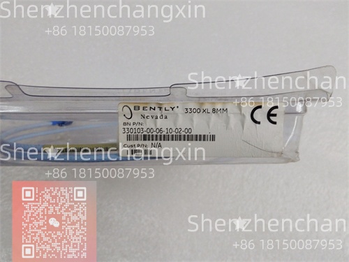 在大型旋转设备的健康监测体系中,传感器是整个系统的“感官神经”——其精度、稳定性和抗干扰能力直接决定了后续分析与保护动作的可信度。Bently Nevada 330103-00-06-10-02-00 正是这一关键环节的标准化解决方案,属于业界广泛采用的 3300 XL 系列 8 mm 电涡流传感器系统。该套件并非单一部件,而是由 8 mm 螺纹探头(330103-00)、5.0 米主体电缆、1.0 米延伸电缆(330130-10-02-00) 和 3300 XL 前置器(Proximitor™,通常为 3300/80-XX) 组成的完整信号链,专为在高温、油污、强电磁干扰的工业现场实现长期稳定测量而设计。